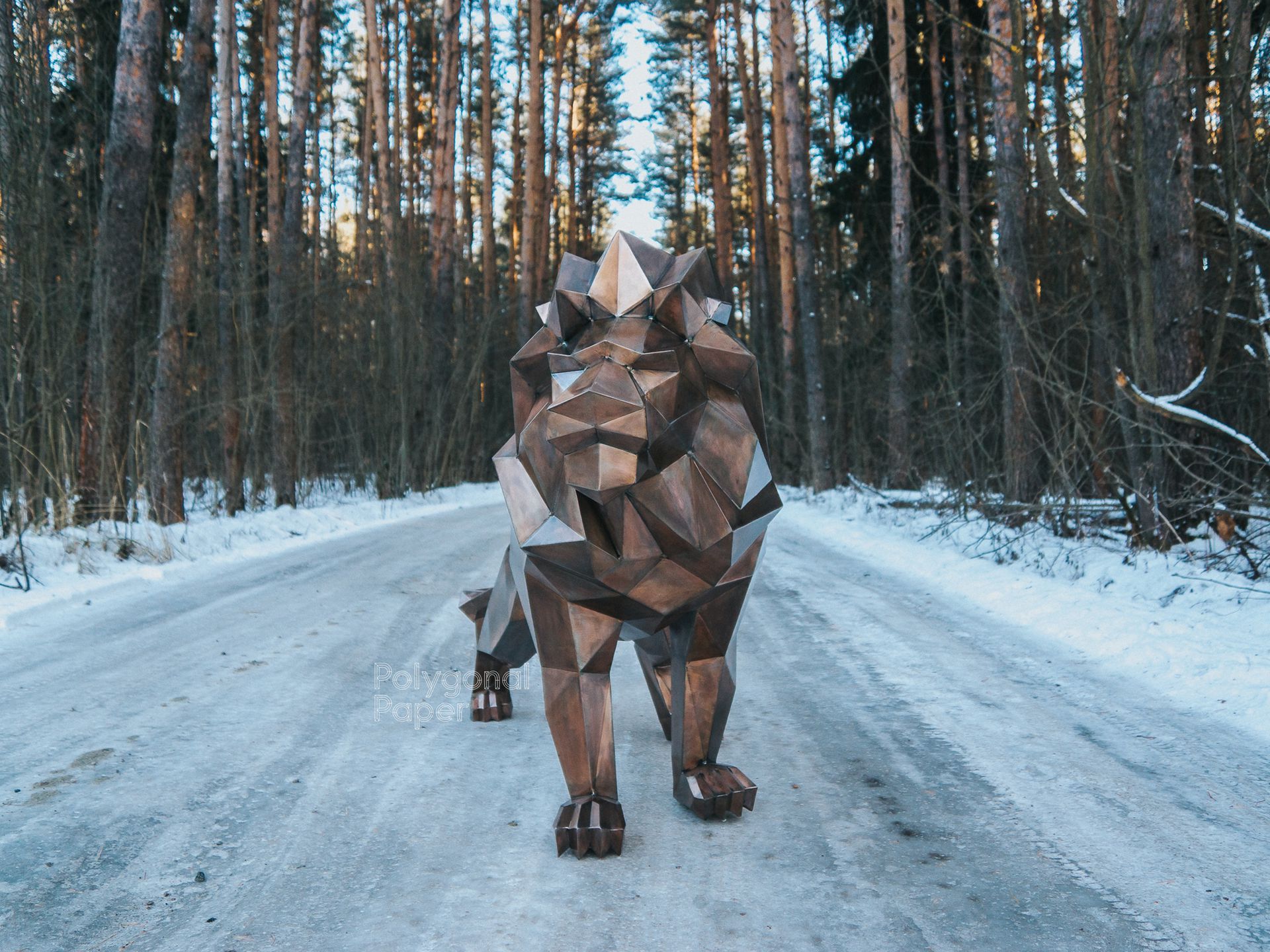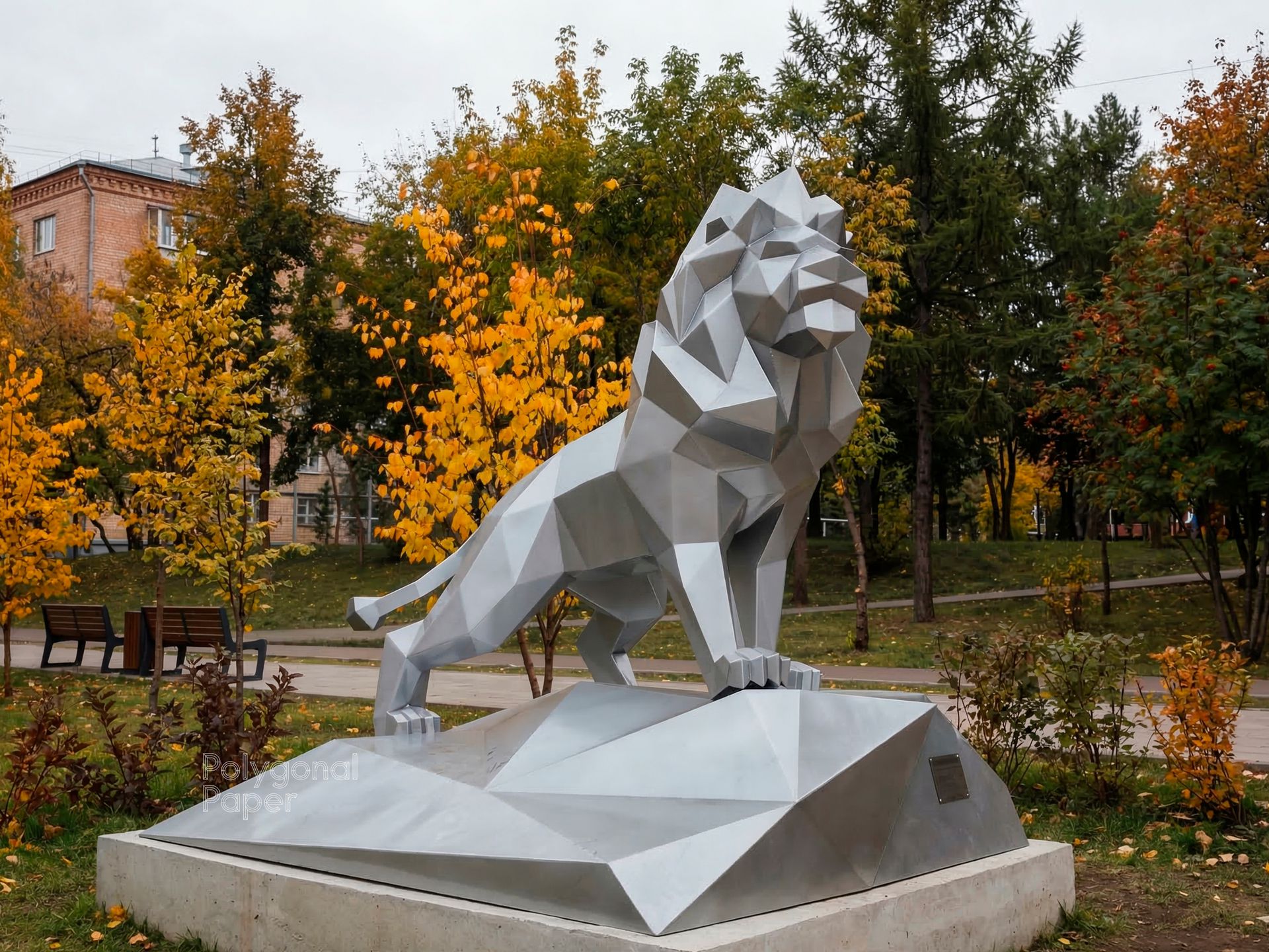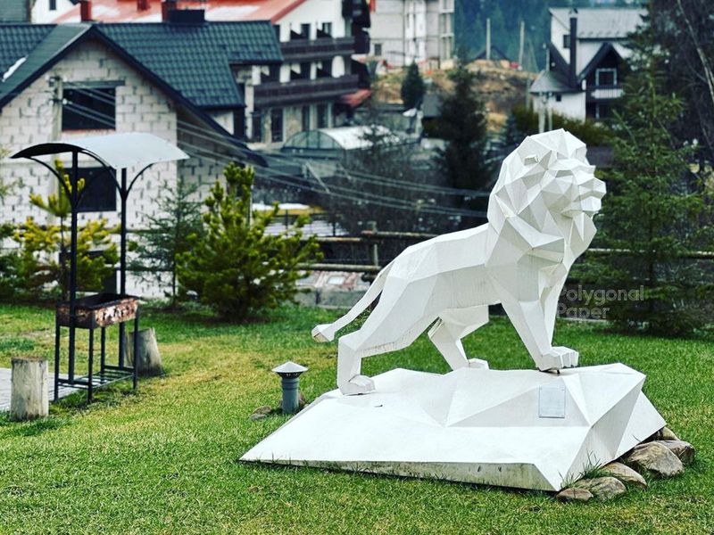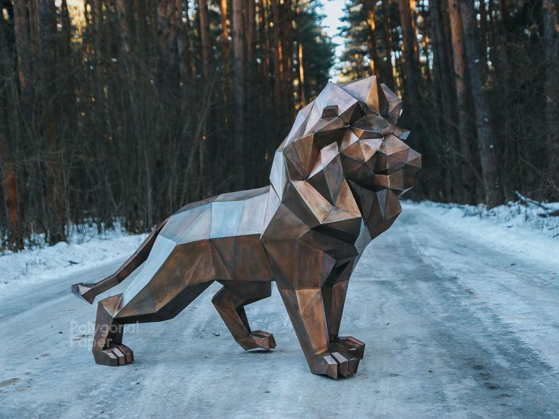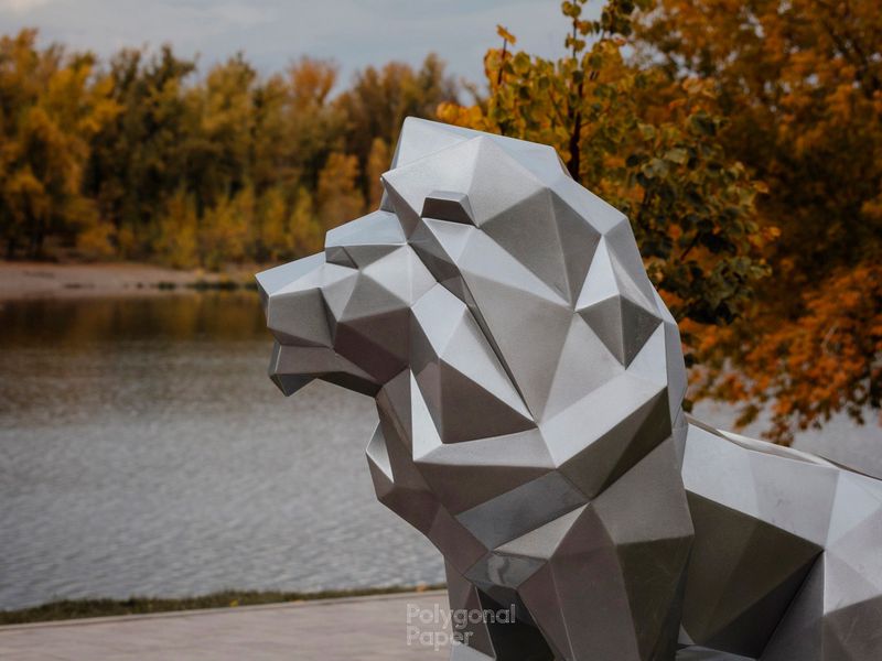 We know how to make a polygonal metal figure. Here you can buy and download drawings and instructions for the creation of low poly metal lion on a stone sculpture.